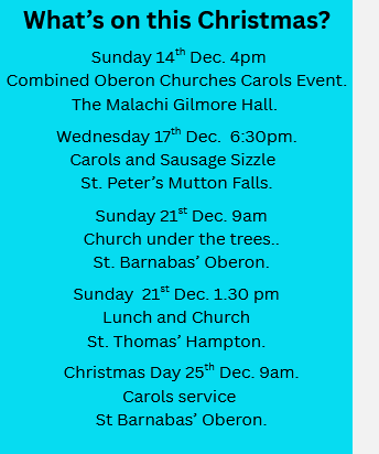 Welcome to the website of Oberon Anglican Parish. We are a small parish with congregations at Oberon, Tarana, Hampton and Mutton Falls. (Hampton is part of the Blackheath parish, but is cared for and administered by us as if it were part of our parish).